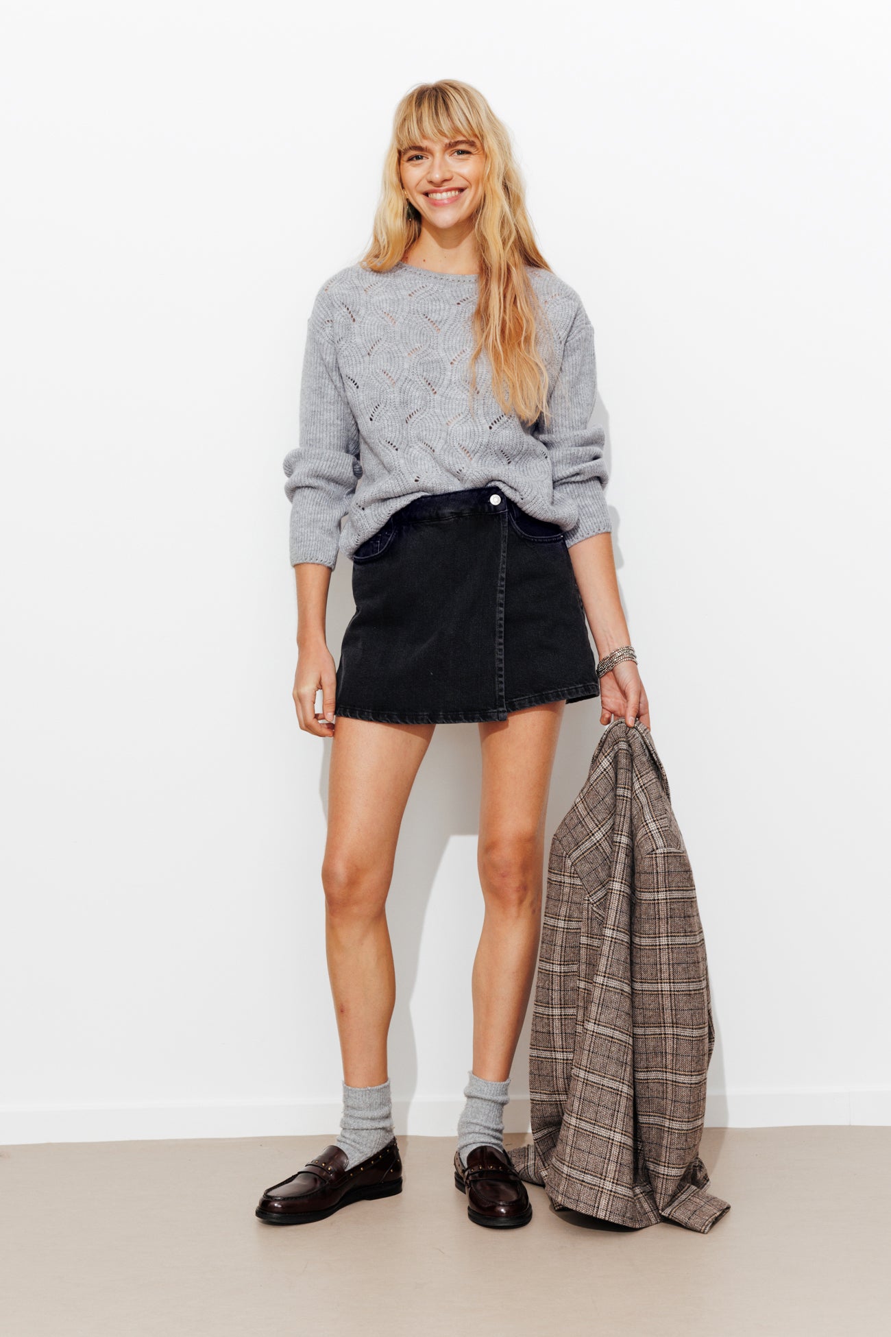 W tym sezonie jesienno-zimowym stawiamy na fantazję! Oryginalne warkocze, intrygujące ażury i prążkowana dzianina – idealnie z jeansami, aksamitem czy satyną. Miękka, bardzo przyjemna w noszeniu. Lekko zwężany dół, dekolt w prążki, obniżona linia ramion, długie rękawy. Zawiera włókna z recyklingu.