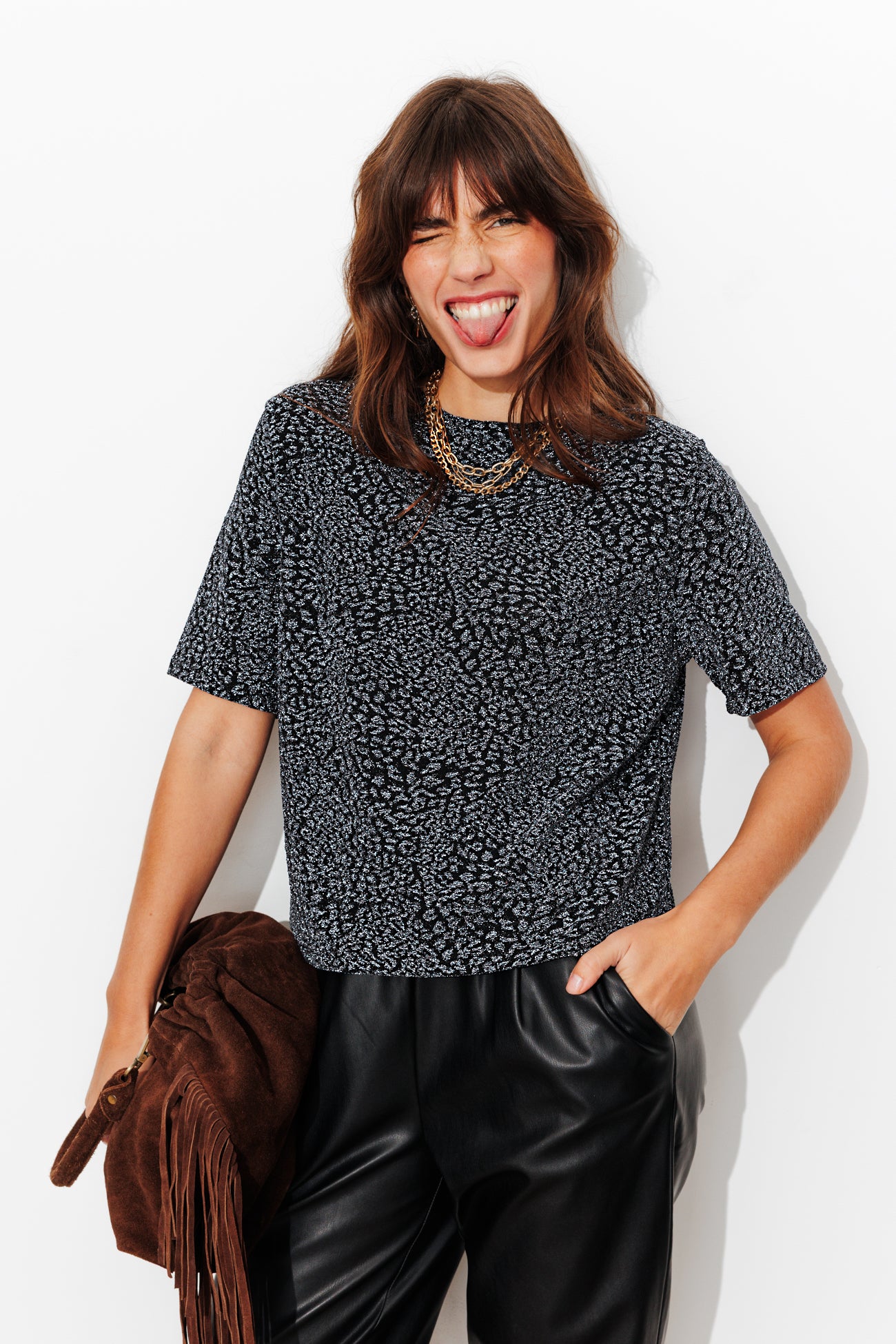 Lekka i elastyczna dzianina. Prosty krój. Okrągły dekolt. Krótkie rękawy. Prosty dół. Ta koszulka damska zawiera włókna pochodzące z recyklingu.