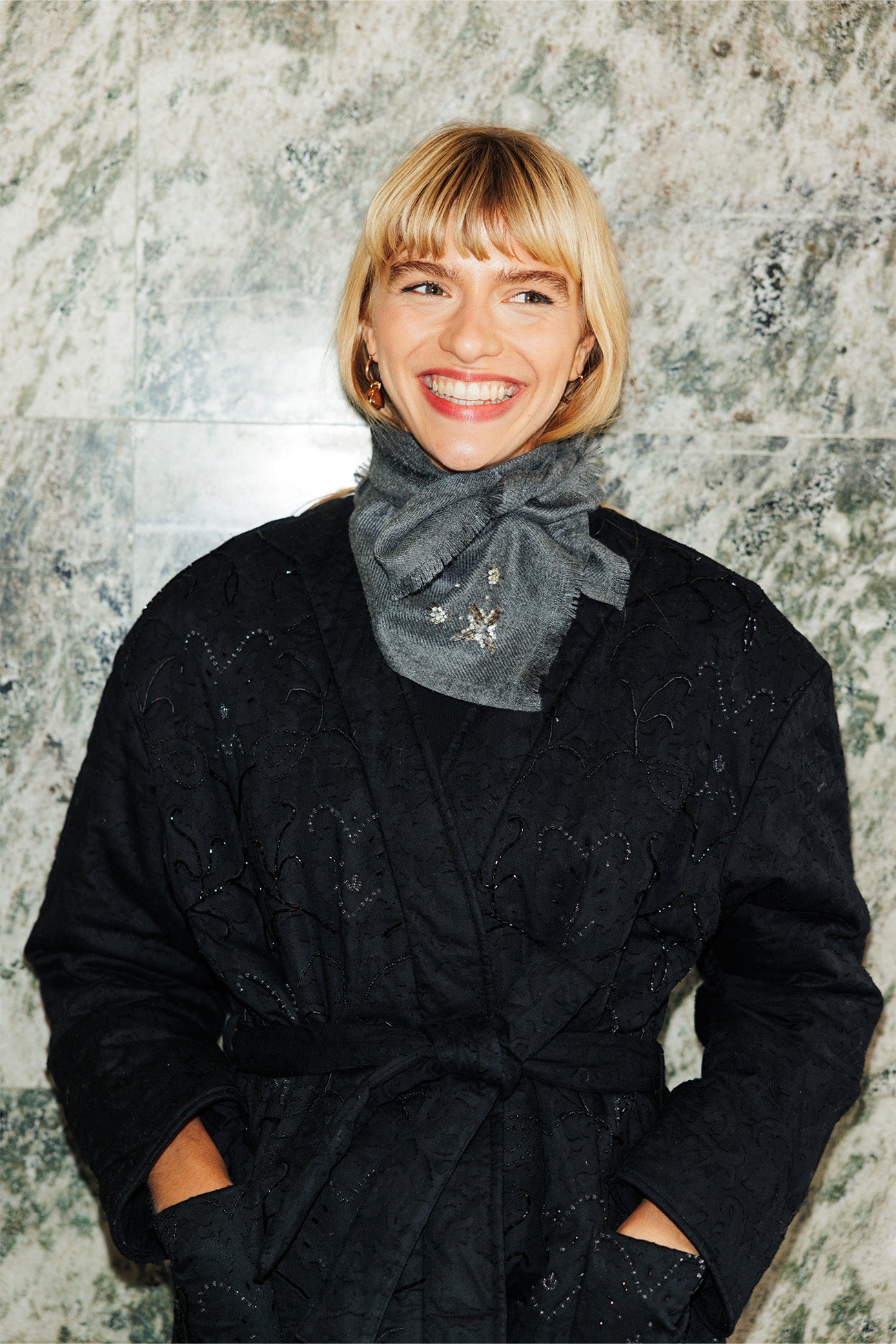 Jest dyskretny, a jednak wyróżnia się. Na tym cienkim, kwadratowym szaliku widać perły i cyrkonie wyszyte w jednym z rogów. Należy go złożyć w trójkąt i zawiązać na szyi. Miękka tkanina. Frędzle na brzegach. Jeden rozmiar. Świetny pomysł na prezent.