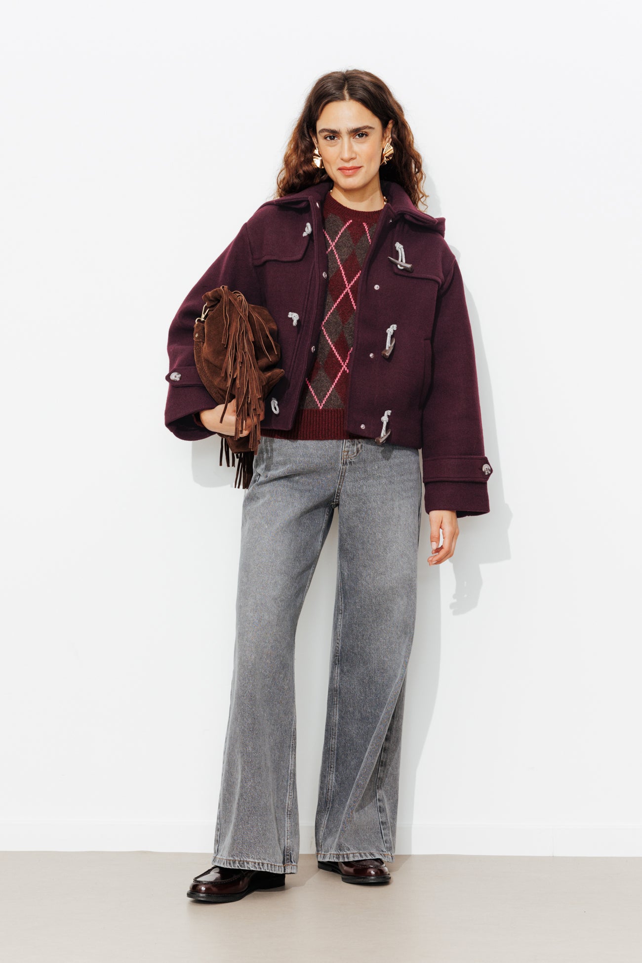 Duffle-coat z kapturem - Bordowy