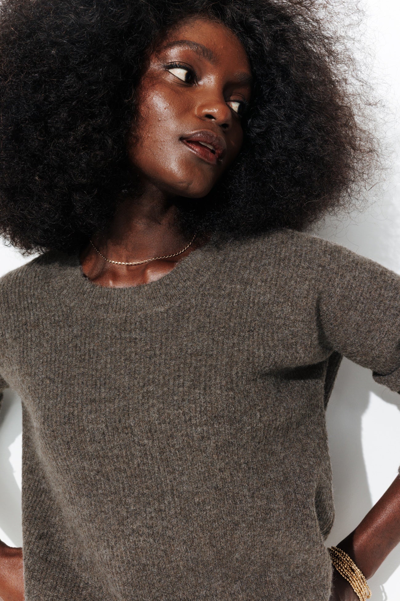Pytanie na śniadanie: wolisz okrągły dekolt czy dekolt w kształcie litery V? Ten sweter umożliwia Ci obie opcje: raz okrągły dekolt z przodu i dekolt w kształcie litery V z tyłu, innym razem okrągły dekolt z przodu i dekolt w kształcie litery V z tyłu! Lekko zwężany krój u dołu. Obniżona linia ramion. Długie rękawy. Prosty dół. Ściągacze. Ten sweter zawiera włókna pochodzące z recyklingu.
