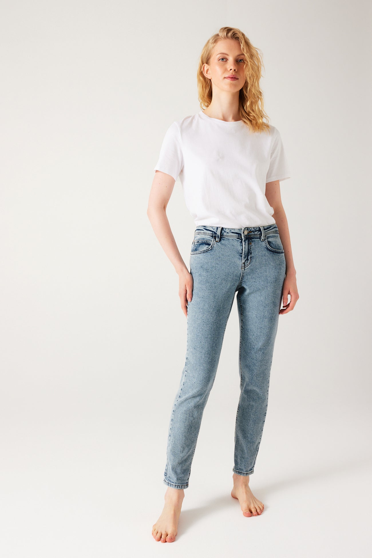 Jeansy typu girlfriend LUCIEN - Jasny jeans