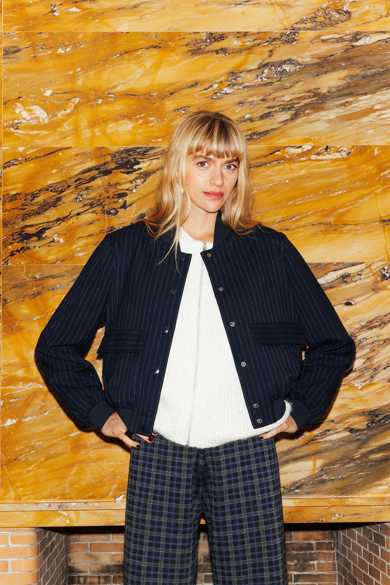 Ta kurtka to prawdziwy hit! Za preppy szyk, chłopięcy urok i uniwersalność na każdą porę roku. Krój inspirowany bomberką z poduszkami na ramionach. Miękki materiał o fakturze flaneli, dół ze ściągaczem, okrągły dekolt, zapięcie na napy, dwie duże kieszenie z klapką, prążkowane wykończenia, podszewka. Zawiera włókna z recyklingu.