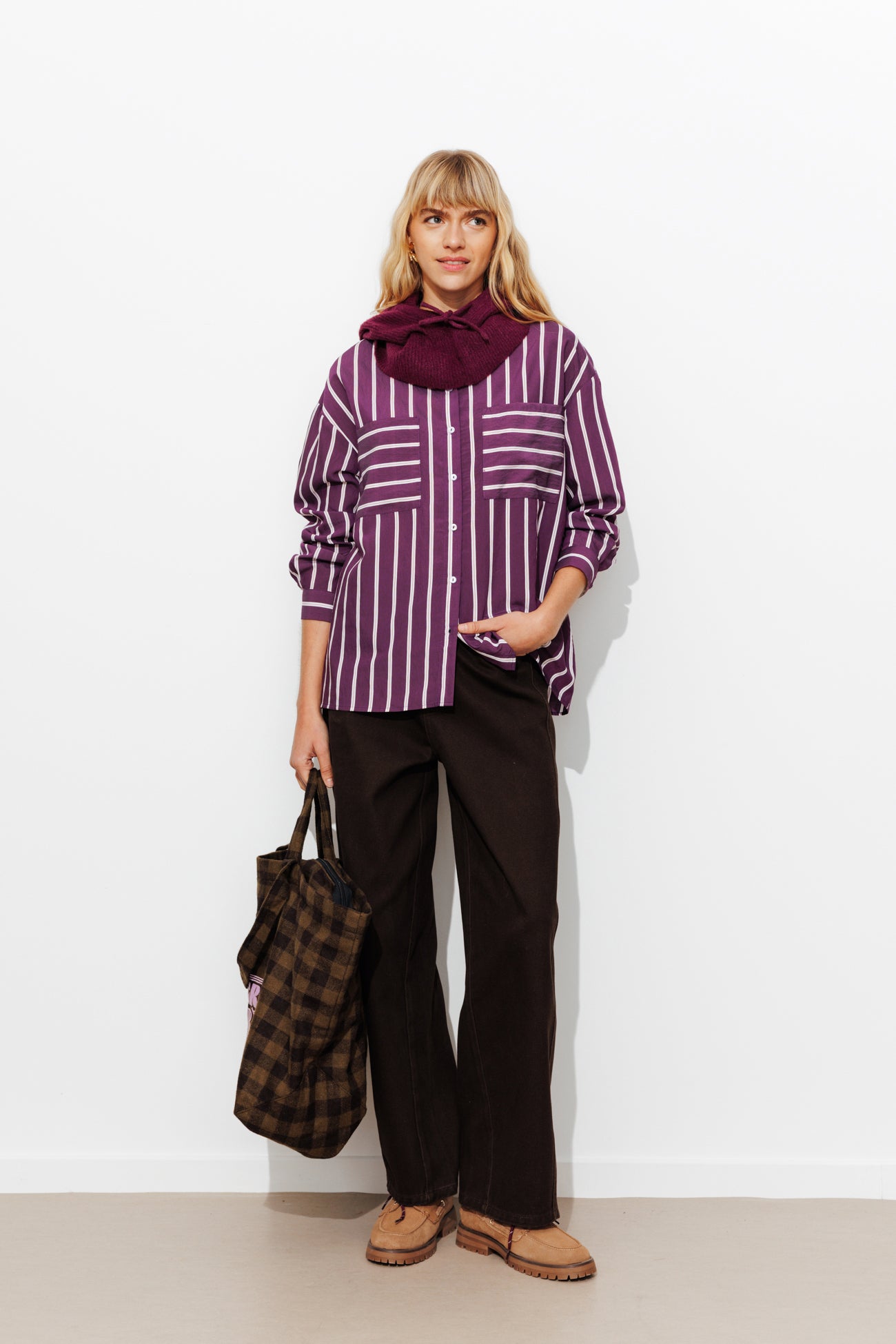 Aby wyglądać modnie w tym sezonie, postaw na paski i fason oversize – ta koszula łączy oba! Luźny krój, kołnierzyk, zapięcie na guziki, 2 kieszenie na piersi. Obniżone ramiona, długie rękawy, mankiety na guziki, prosty dół, staranne wykończenie. Koszula zawiera włókna z recyklingu oraz wiskozę z pulpy drzewnej pochodzącej z odpowiedzialnie zarządzanych lasów.