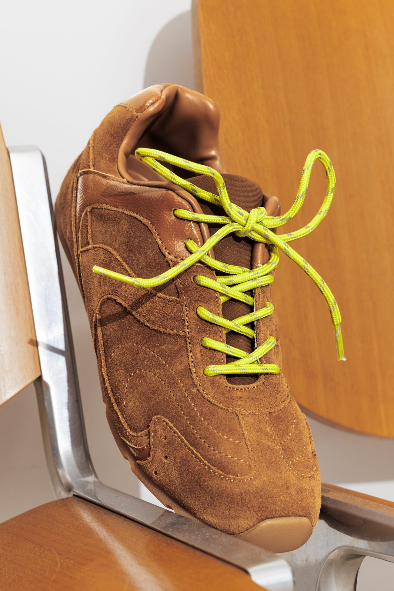 Bardzo płaskie, bardzo cool ! Te skórzane sneakersy to must-have dla superaktywnych. Dodają nuty street-sport do spódnicy midi, spranych jeansów czy spodni garniturowych. Zaokrąglony nosek. Lakierowane wstawki. Dwie pary sznurowadeł: płaskie klasyczne i okrągłe trekkingowe. Wyściełany kołnierz i język. Przeszycia ton w ton. Idealny pomysł na prezent.