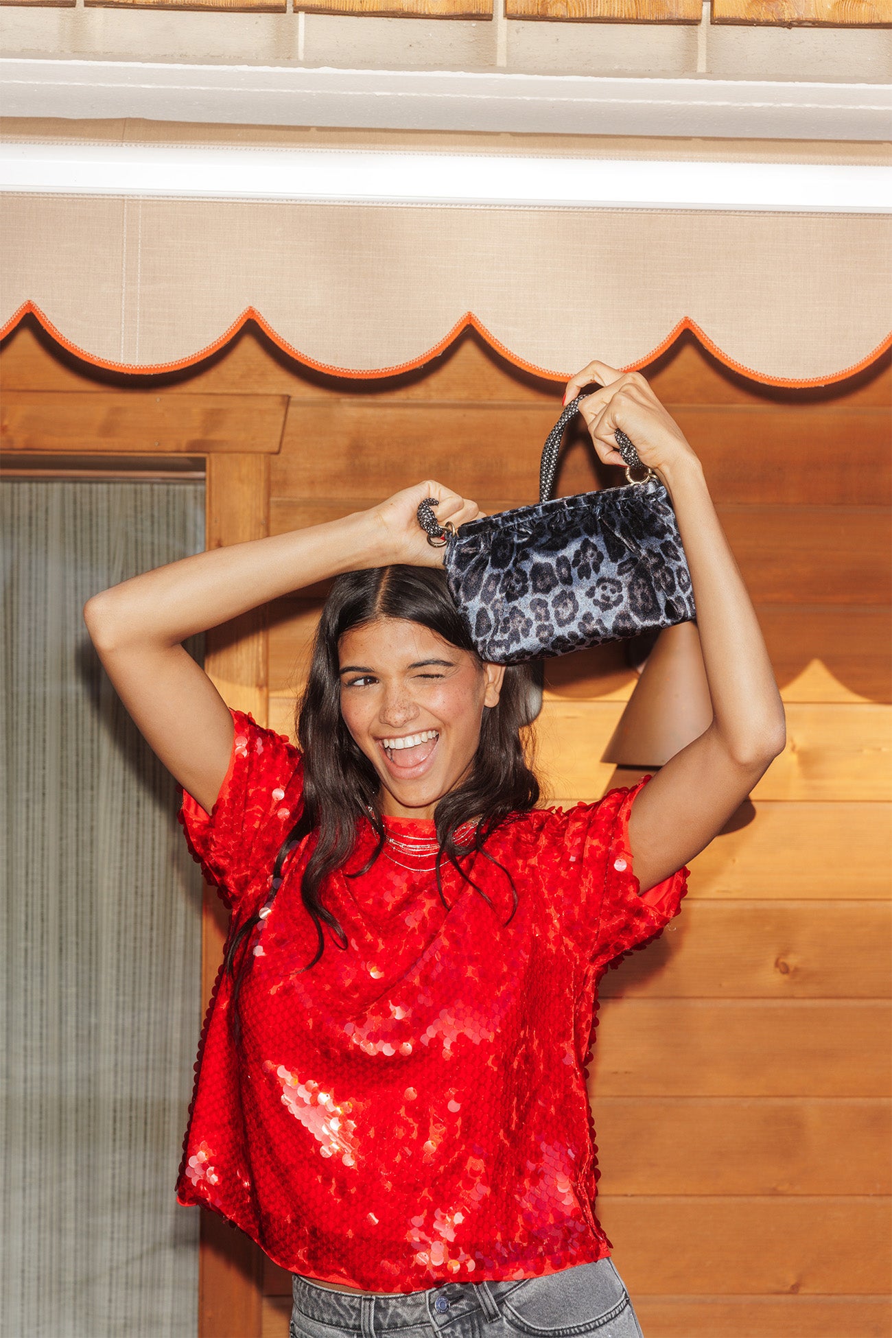 Kolejne połączenie panterki na satynowym aksamicie plecaka z wiązanym paskiem. Uwielbiamy to nieoczekiwane połączenie. Zamek. Podszewka. Odpinany pasek. Jeden rozmiar. Świetny pomysł na prezent.