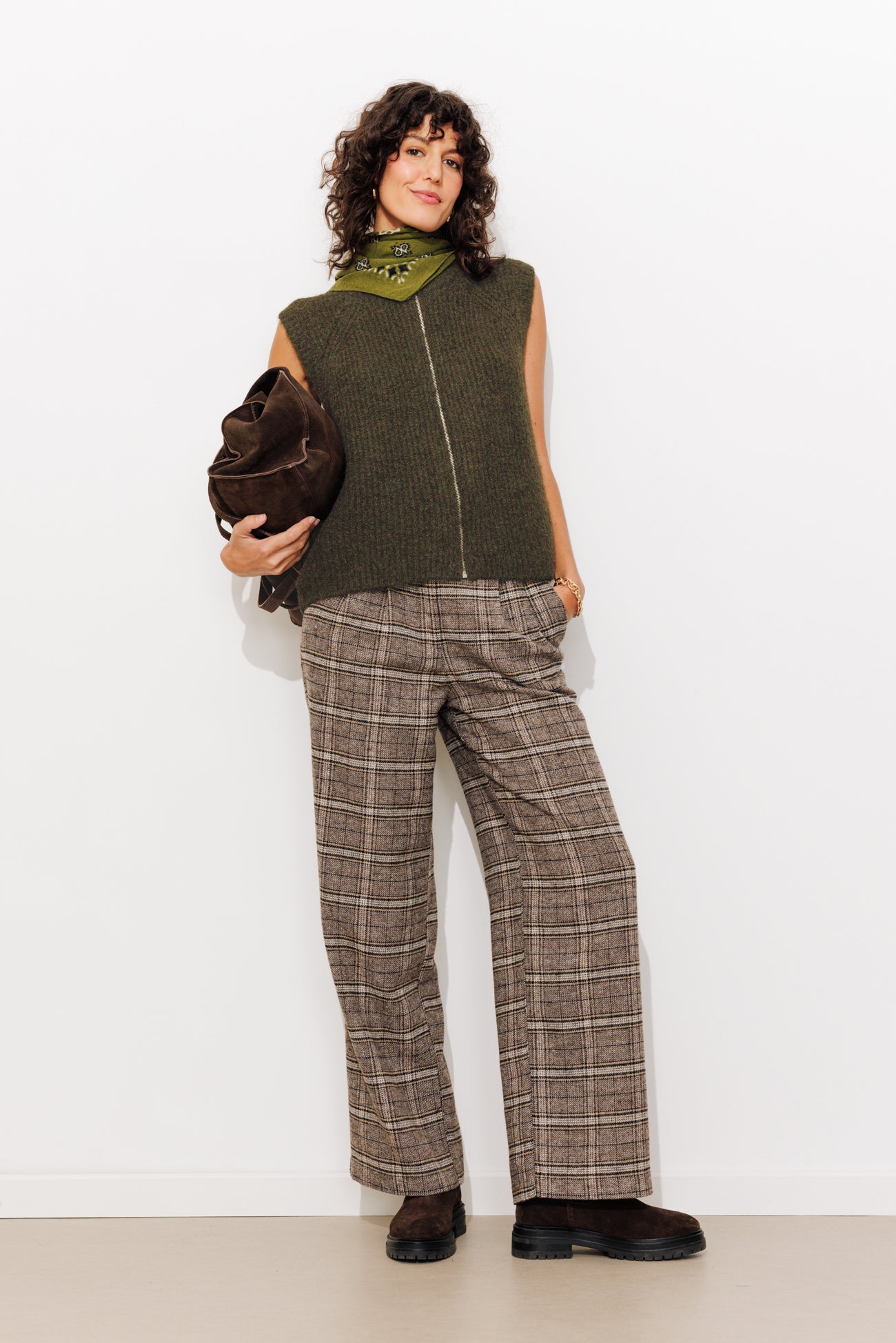 Ta kamizelka bez rękawów działa na nas jak pocieszenie w środku jesieni i zimy. W domu lub na zewnątrz. Na koszulę lub pod kurtkę: wygląda świetnie! Prążkowany i puszysty dzianinowy materiał wzbogacony wełną. Prosty krój. Okrągły dekolt. Zapięcie na zamek. Gra prążków i ażurowych elementów. Prosty dół. Ściągacze. Ta kamizelka damska zawiera włókna pochodzące z recyklingu.