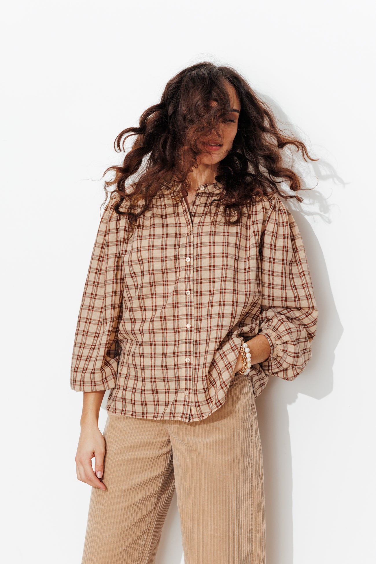 Opalizujące odblaski i stonowane kratki: to idealne połączenie dla odświeżonego stylu folkowego! Ta koszula z bawełny i lureksu doskonale pasuje do jeansów, aksamitnych spodni, płóciennej spódnicy... Luźny krój. Zapięcie na guziki. Długie rękawy, mankiety zapinane na guziki. Zaokrąglony dół. Zawiera bawełnę pochodzącą z upraw ekologicznych, uprawianą bez pestycydów, nawozów chemicznych i GMO.