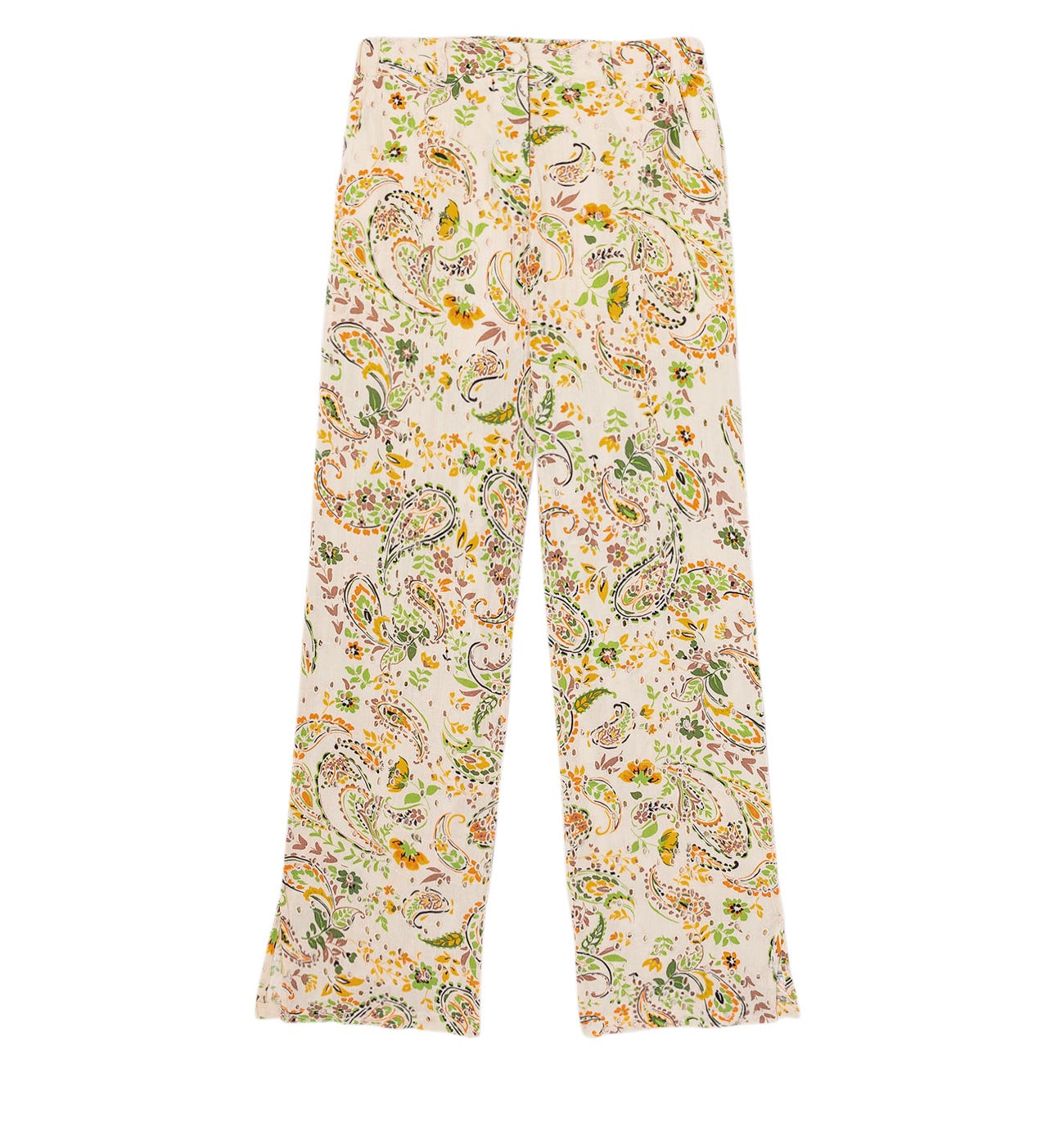 Wysoki elastyczny pas z tyłu. Zapięcie na powlekany guzik i metalowy zamek. Szlufki. 2 kieszenie. Krótka podszewka. Ten artykuł jest wykonany z odpowiedzialnej wiskozy, miękkiej i płynnej: jest wykonana z masy drzewnej z zarządzanych lasów (kiedy drzewo jest wycinane, kolejne jest sadzone na nowo).