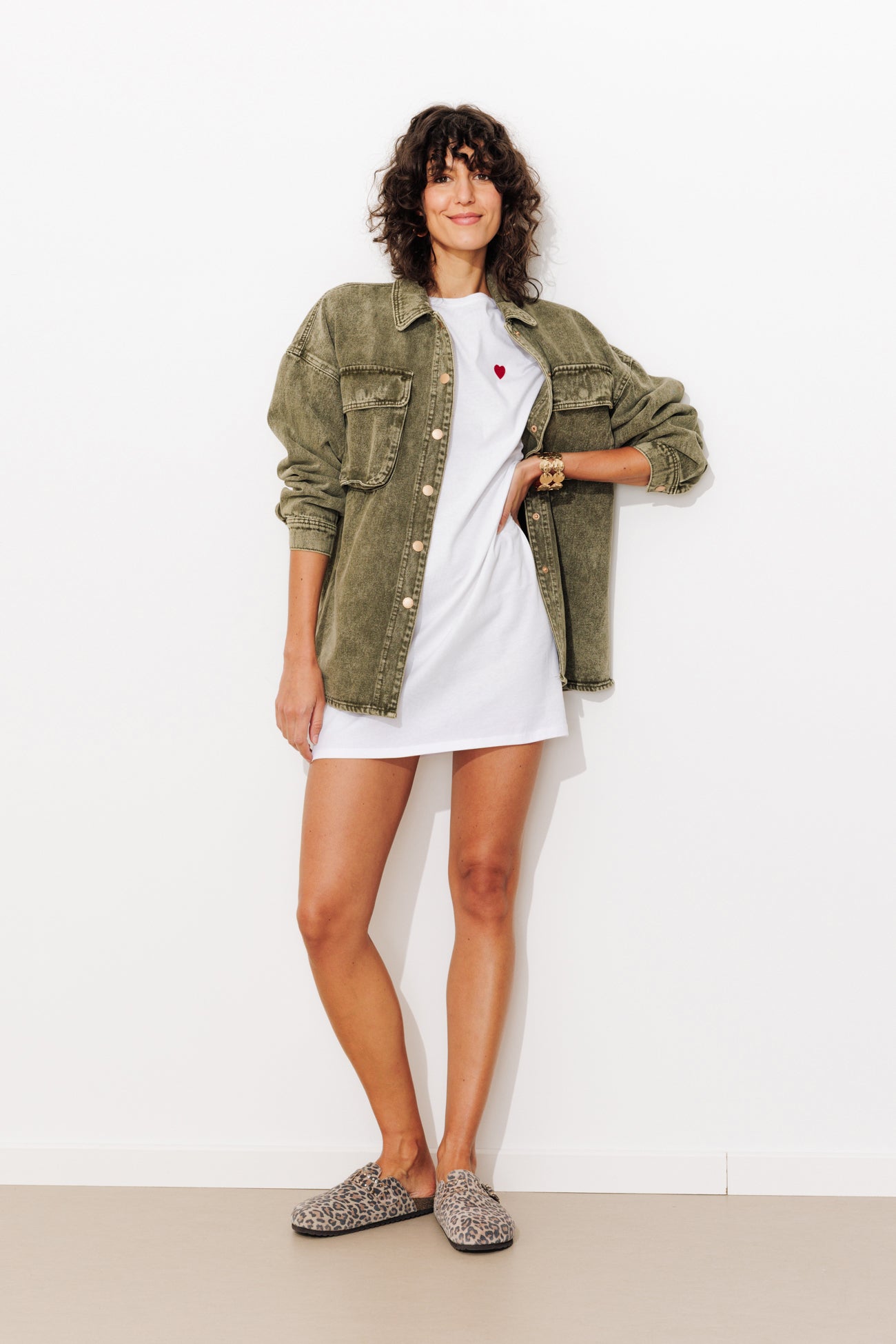 Ta sukienka z miękkiej bawełnianej dzianiny ma na piersi cekinowe serce: miłość od pierwszego wejrzenia! Można ją nosić z paskiem lub bez. Można ją ozdobić biżuterią. Prosty krój i krótka długość. Okrągły dekolt. Krótkie rękawy. Prosty dół. Zawiera bawełnę pochodzącą z ekologicznych upraw, uprawianą bez pestycydów, nawozów chemicznych i GMO w celu zachowania bioróżnorodności.