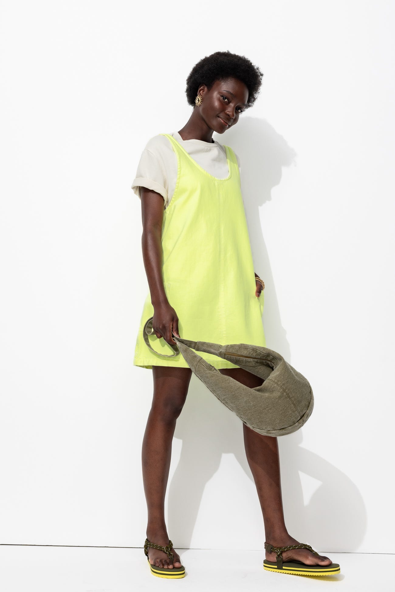 Miłość od pierwszego wejrzenia do jaskrawego koloru i tej ogrodniczki z bawełnianego materiału! Zastosowana technika barwienia zapewnia niepowtarzalny i oryginalny wygląd. Kolor może z czasem wyblaknąć lub odbarwić się. Okrągły dekolt z przodu i z tyłu. 2 duże naszywane kieszenie. Ta damska sukienka zawiera bawełnę z recyklingu.