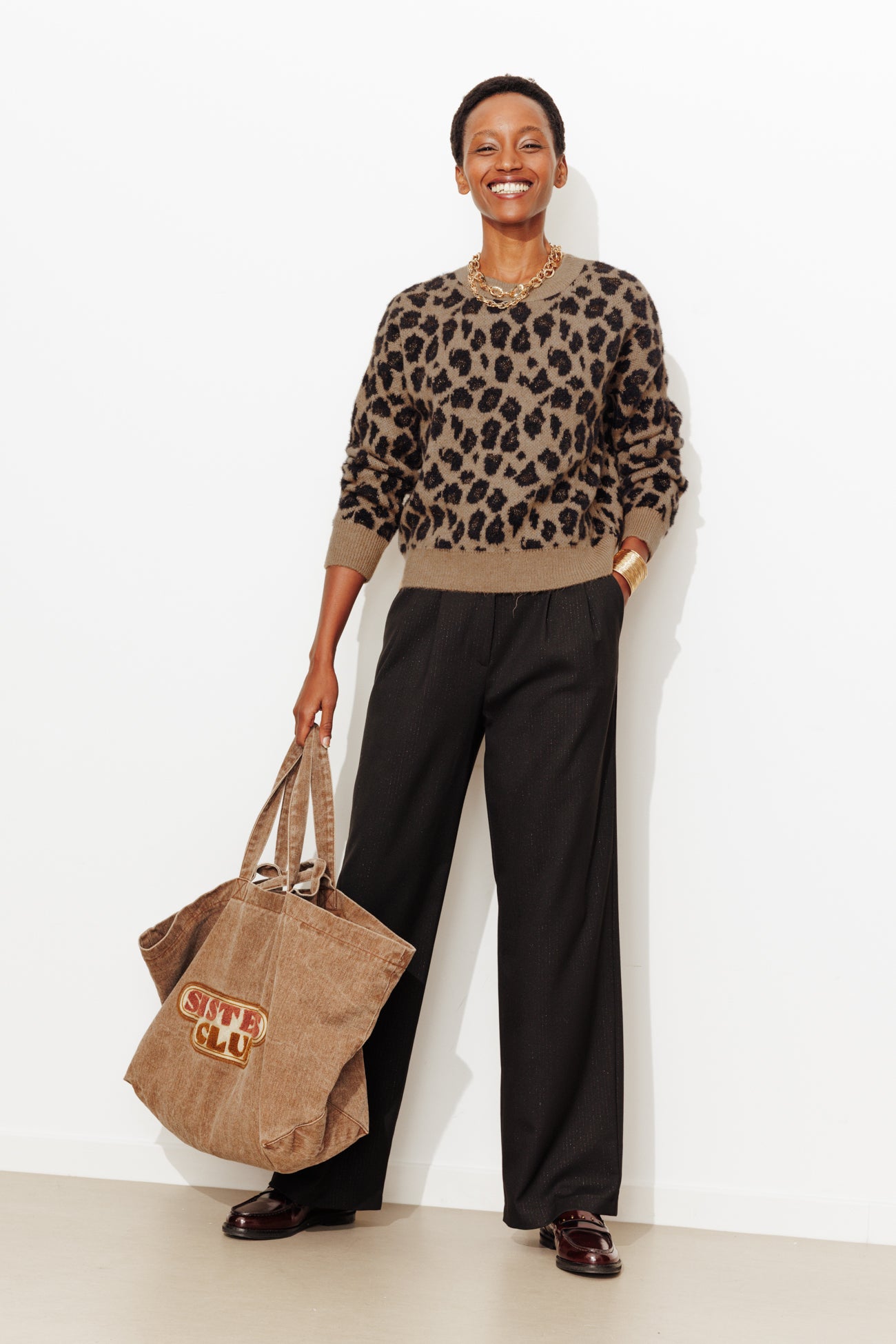 Wzór panterki to klasyka... która lubi odrobinę fantazji! Tutaj kilka punktów opalizujących oczek robi różnicę i bardzo nam się to podoba! Staramy się złagodzić efekt, dobierając spodnie, jeansy lub gładką spódnicę... Gruba i miękka dzianina, żakardowe wzory. Lekko zwężany krój u dołu. Okrągły dekolt. Obniżona linia ramion. Długie rękawy. Prosty dół. Ściągacze.
